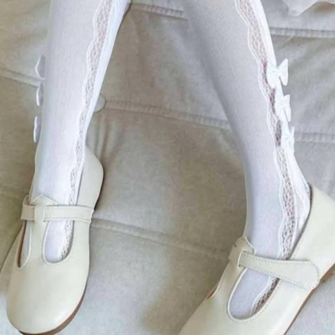 Rajstopy ażurowe z kokardką dziewczęce biały Kidodido K2316-1-15425