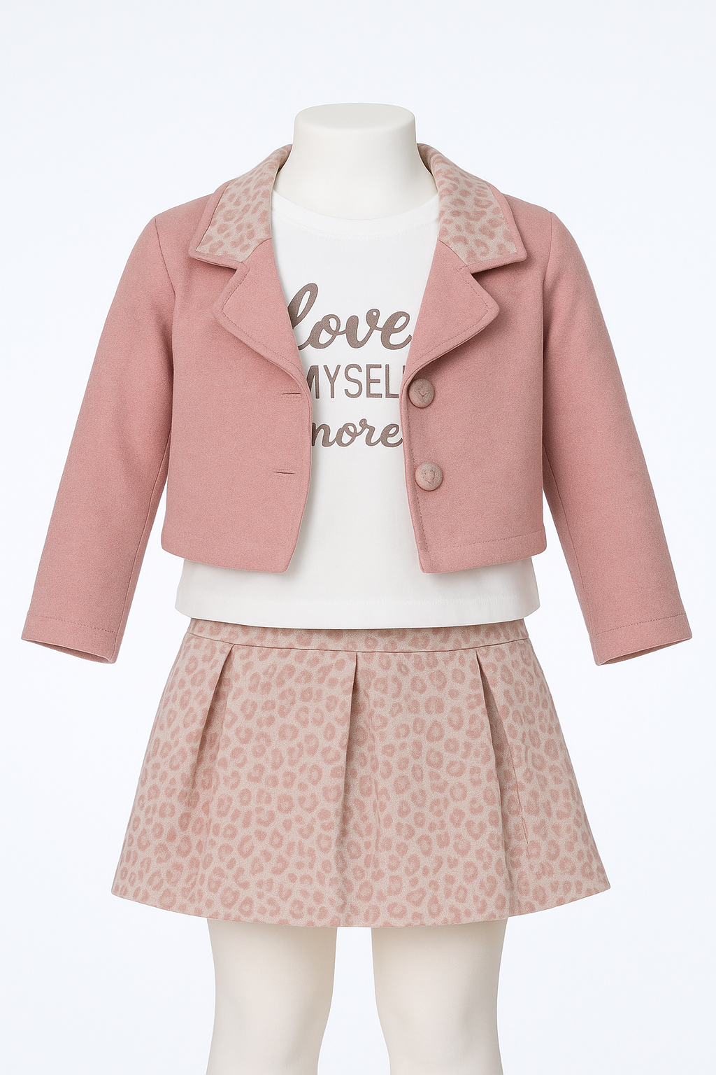 Komplet 3 części panterka dziewczęcy pudrowy róż Sugar 1038-51125