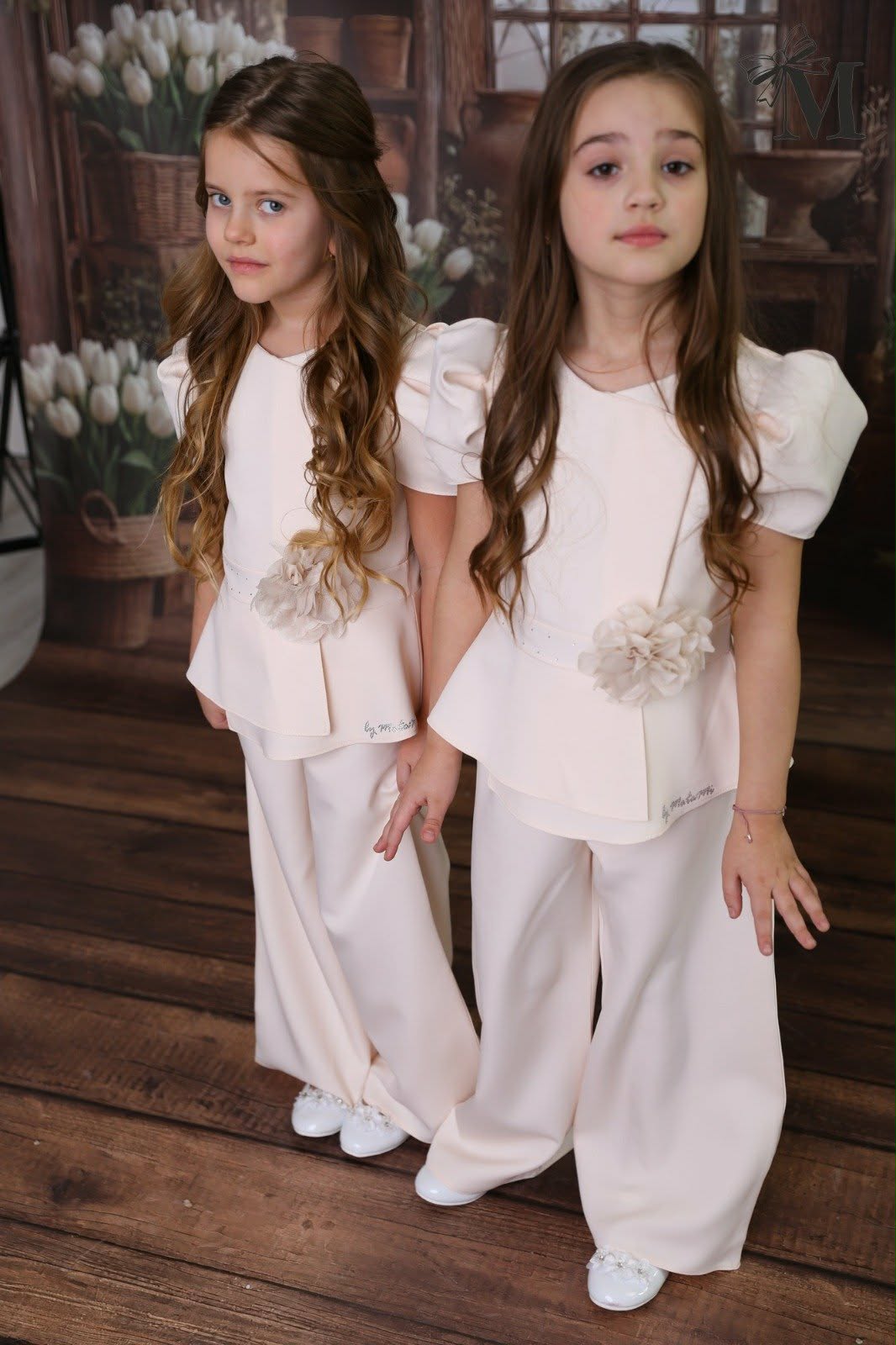 Komplet elegancki bluzka z baskinką + spodnie dziewczęcy wanilia Małami 2773-27226
