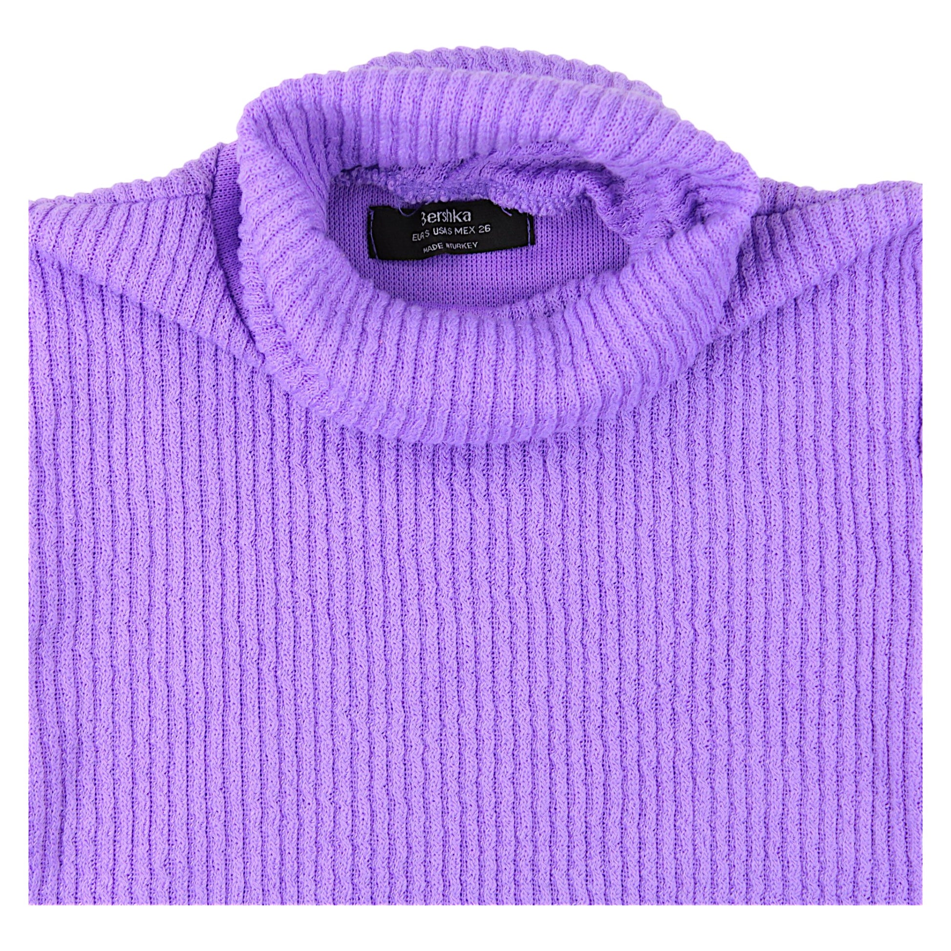 Stylowa bluza z golfem dla dziewczynki od marki Bershka w wyjątkowym fioletowym kolorze. Model wykonany z prążkowanego materiału, który nadaje jej eleganckiego wyglądu. Długi rękaw oraz wysoki golf zapewniają ciepło i komfort noszenia, idealne na chłodniejsze dni. Krój typu crop top dodaje nowoczesnego charakteru, świetnie komponując się z jeansami lub spódniczką.