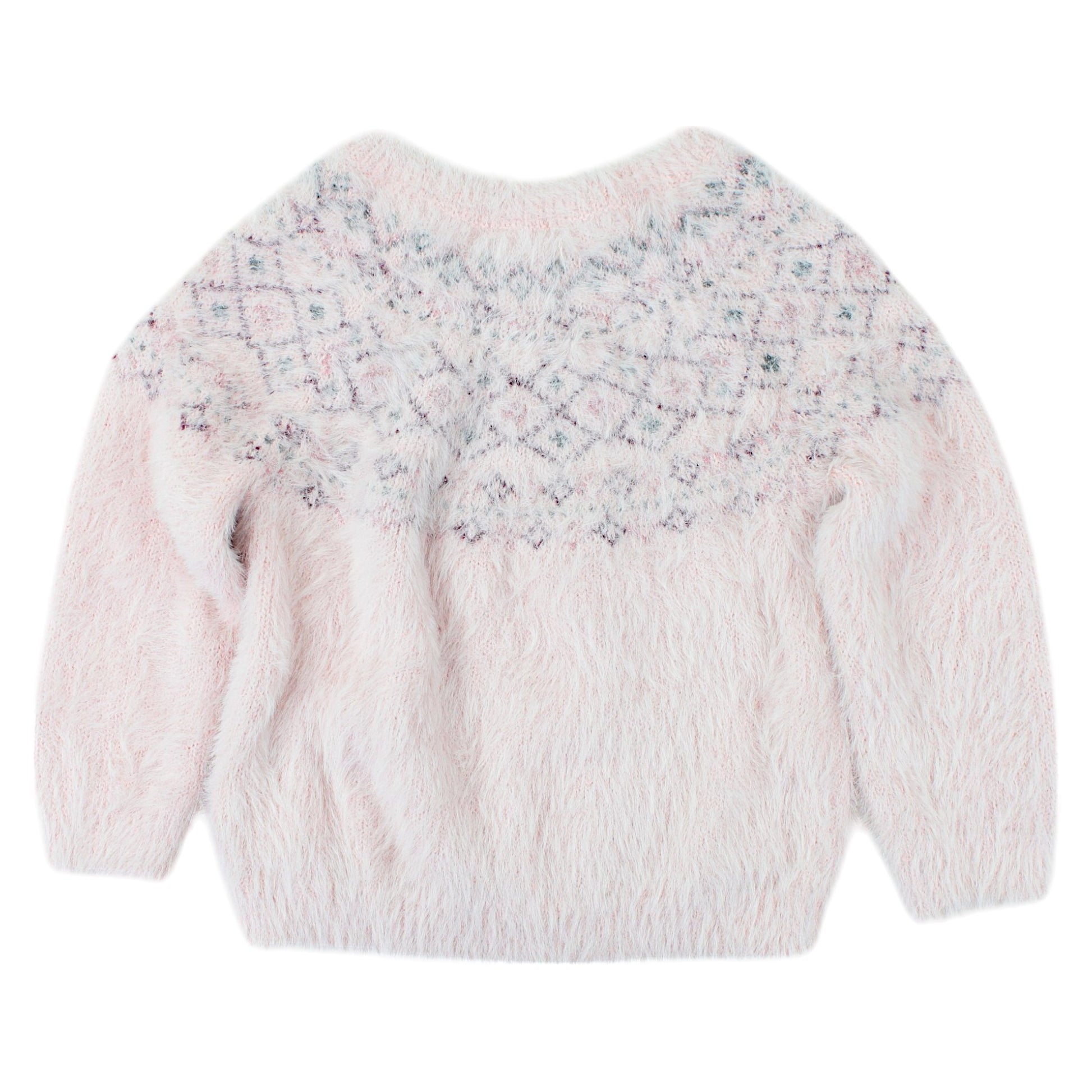 Urocza bluza dziewczęca w różowym kolorze wykonana z miękkiego futerka. Długi rękaw oraz okrągły dekolt zapewniają komfort i ciepło. Ozdobiona wzorem na karczku w pastelowych kolorach, dodającym delikatnego uroku. Idealna na chłodniejsze dni w sezonie wiosna-lato. Brak kieszeni i zapięć, zakładana przez głowę.