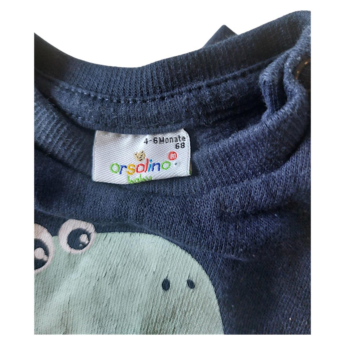 Ta czarna bluzka z uroczo wykonanym nadrukiem dinozaurów sprawi, że Twój maluch będzie wyglądał świetnie w każdej sytuacji. Posiada komfortowe zapięcie na ramieniu, co ułatwia zakładanie. Jest idealna na co dzień, a także na specjalne okazje. Wykonana z miękkiego materiału, zapewnia wygodę noszenia. Bluzka jest w stanie bardzo dobrym i z pewnością stanie się ulubionym elementem garderoby Twojego dziecka. Sprawdzona jakość i styl to cechy, które z pewnością przypadną do gustu każdemu rodzicowi.