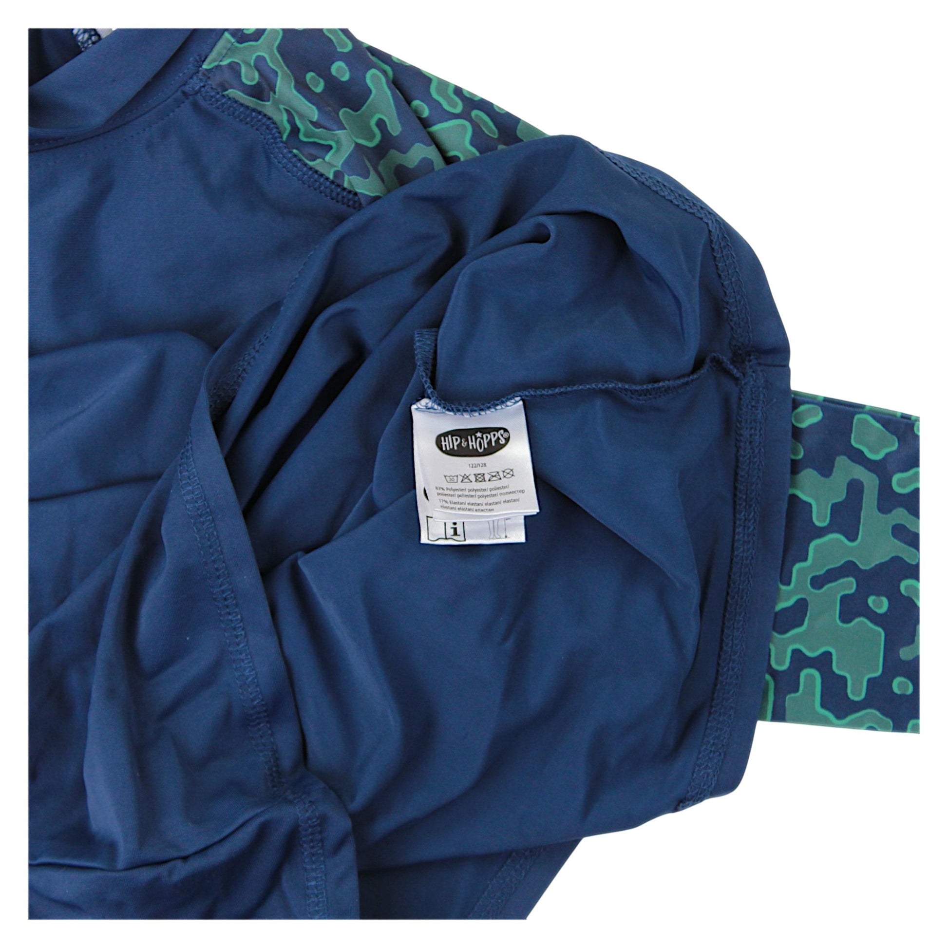 Bluzka z długim rękawem chłopięca HIP&HOPPS w kolorze granatowym. Wykonana z materiału wysokiej jakości, idealna na sezon wiosna-lato. Posiada sportowy design z ciekawym wzorem moro na rękawach. Bluzka ma długi rękaw i wysoki kołnierz, co zapewnia dodatkową ochronę przed wiatrem. Świetnie sprawdzi się podczas aktywności na świeżym powietrzu.