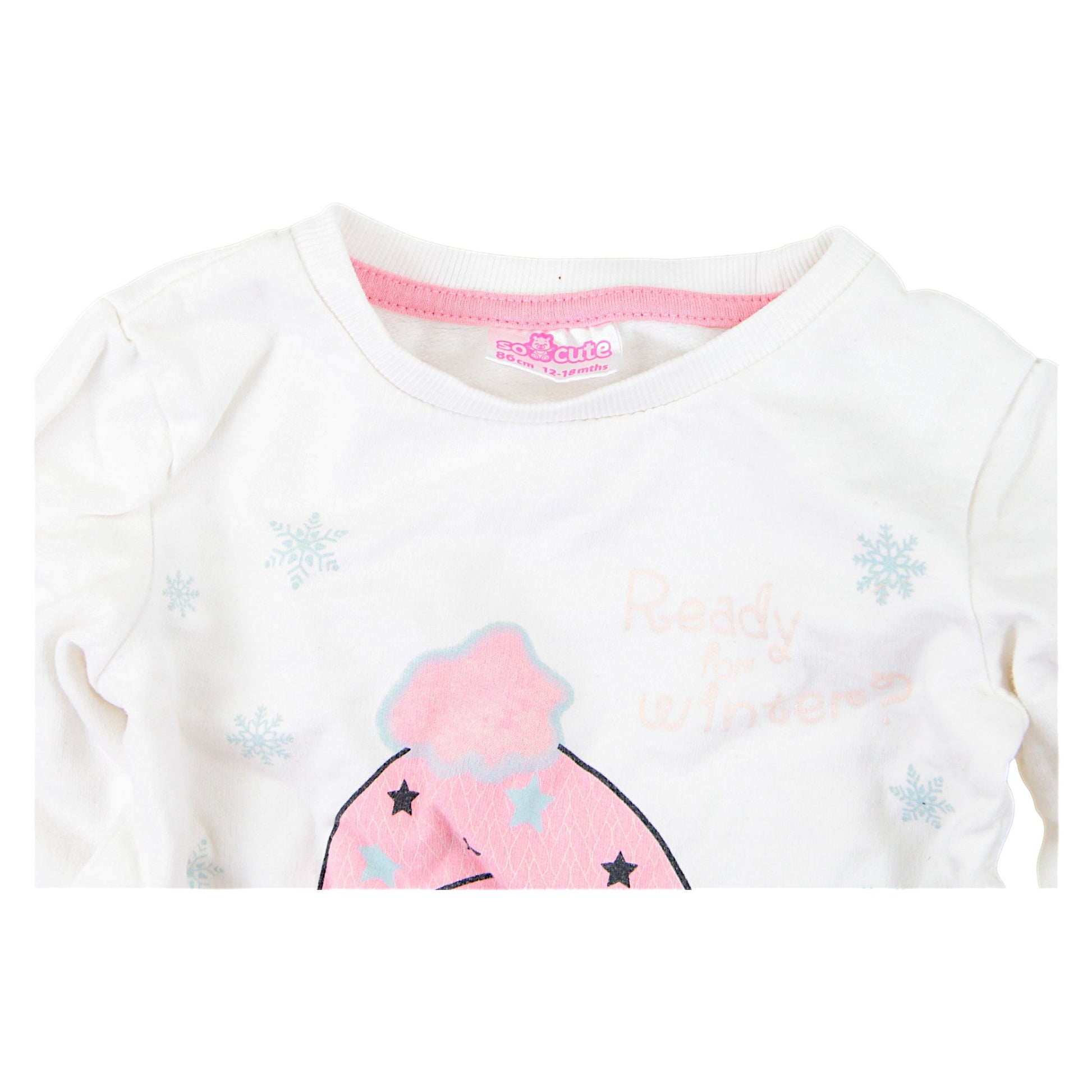Bluzka z długim rękawem z motywem zimowym to urocza propozycja dla dziewczynki na sezon wiosna-lato. Biały kolor w połączeniu z nadrukiem przedstawiającym dziewczynkę w zimowej czapce oraz delikatnymi śnieżynkami nadaje jej uroku i dziewczęcego wdzięku. Miękki materiał gwarantuje komfort noszenia, a okrągły dekolt oraz elastyczne mankiety zapewniają swobodę ruchów. Długi rękaw sprawia, że bluzka idealnie sprawdzi się w chłodniejsze dni. Stylowy nadruk z napisem „Ready for winter” dodaje jej oryginalności i przytulnego charakteru.