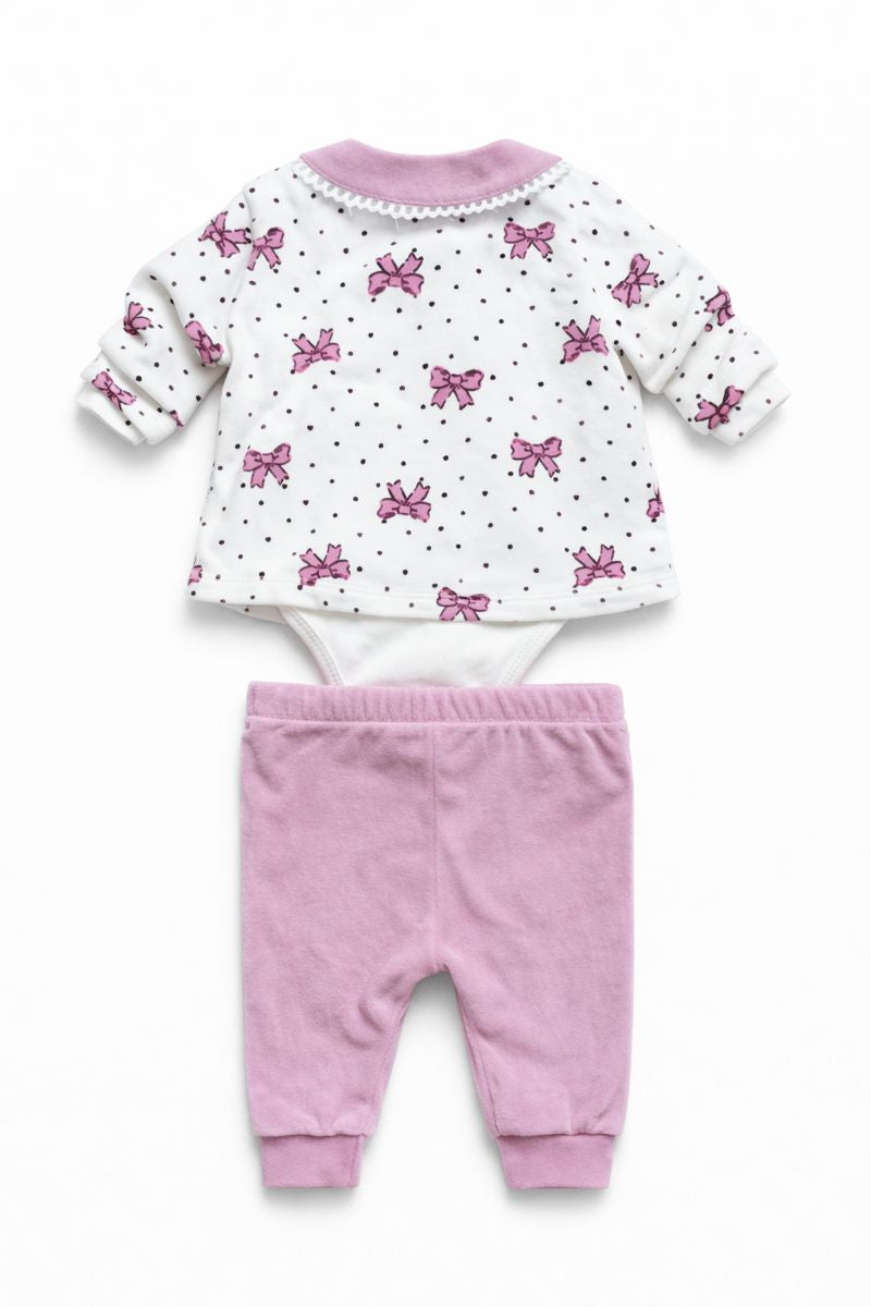 Dziewczęcy komplet 3 części z body w kolorze ciemnego różu