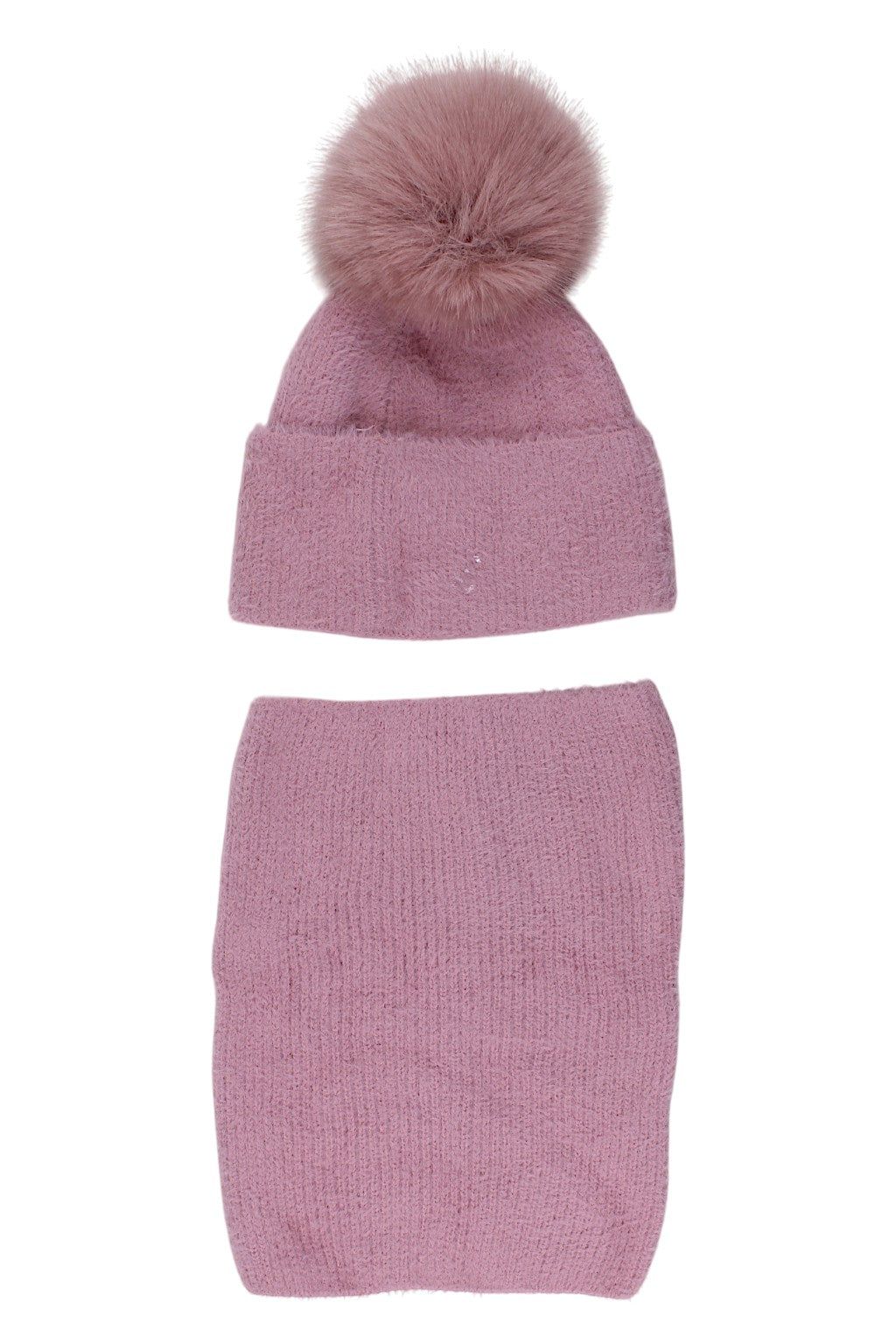 Komplet czapka komin dziewczęcy różowy Ambra 8108-221025