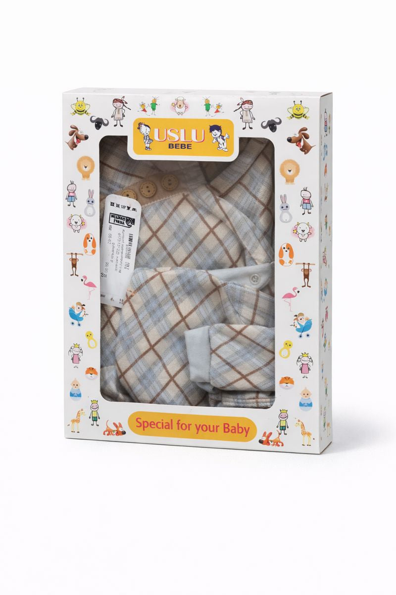 Odkryj wyjątkowy komplet wyprawkowy dla chłopca w kolorze niebieskim, stworzony przez renomowaną markę Bebek. Ten pięcioczęściowy zestaw to doskonały wybór dla noworodków i niemowląt, idealny na sezon jesień-zima. W skład kompletu wchodzi kaftanik z długimi rękawami, który posiada praktyczne zapięcie na napy, umożliwiające szybkie i łatwe ubieranie maluszka. Czapeczka jest miękka i elastyczna, doskonale chroni główkę dziecka przed chłodem. Półśpiochy wyposażone są w elastyczną gumkę w pasie, co zapewnia wygodę i swobodę ruchów. Materiał, z którego wykonano komplet, jest przyjemny w dotyku i delikatny dla skóry dziecka, co czyni go idealnym wyborem dla najmłodszych. Zestaw utrzymany jest w eleganckim odcieniu niebieskiego, co sprawia, że jest nie tylko praktyczny, ale także stylowy. To doskonały prezent dla nowo narodzonego chłopca, który zapewni mu komfort i ciepło w pierwszych miesiącach życia.