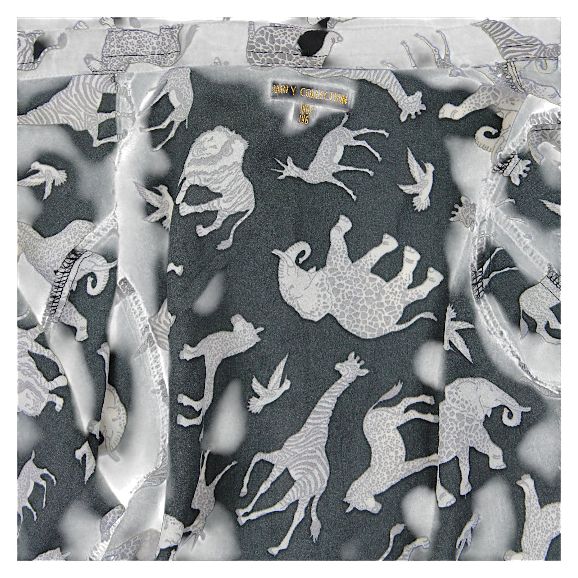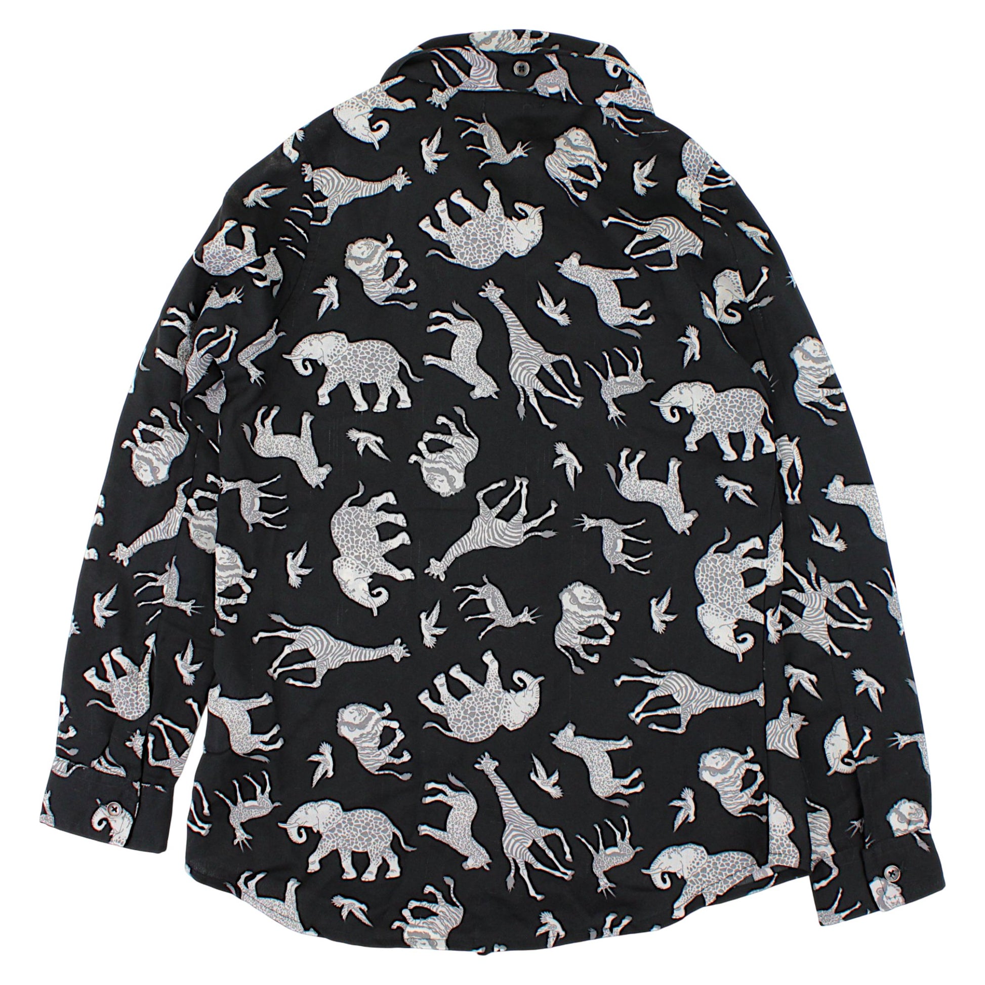 Czarna koszula chłopięca z oryginalnym wzorem zwierzątek od Party Collection. Wykonana z lekkiego materiału, idealna na wiosnę i lato. Długi rękaw z możliwością podwinięcia oraz zapięcie na guziki na całej długości. Stylowy wzór z motywem dzikich zwierząt dodaje oryginalności i sprawia, że koszula świetnie komponuje się z różnymi stylizacjami.