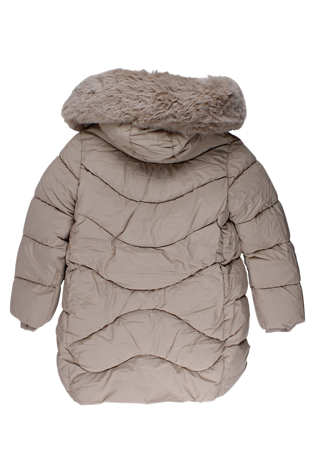 Na przodzie kurtki umieszczono dwie kieszenie boczne, które są idealne do przechowywania drobnych przedmiotów lub ogrzewania rąk. Rękawy kurtki są odpowiednio długie, aby zapewnić pełną ochronę przed zimnem. Tył kurtki jest prosty, co podkreśla jej klasyczny i elegancki charakter. Produkt jest przeznaczony dla dziewczynek i idealnie sprawdzi się jako codzienna odzież wierzchnia na chłodniejsze dni. Dzięki swojemu stylowemu wyglądowi i funkcjonalności, kurtka ta jest nie tylko praktyczna, ale również modna, co z pewnością przypadnie do gustu każdej młodej damie.