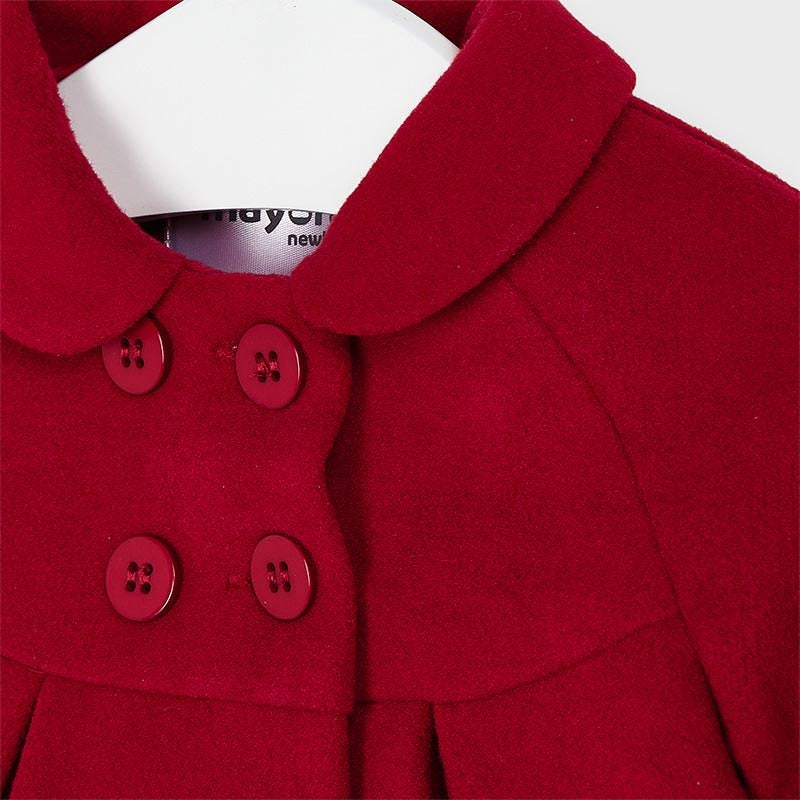 Płaszczyk elegancki dla dzieci gładki ocieplony z kołnierzykiem zapinany na guziki dla dziewczynek Mayoral z kolekcji newborn girl z sezonu jesień-zima kod produktu 2466 kolor 45 Czerwony. Odzież dla noworodków.