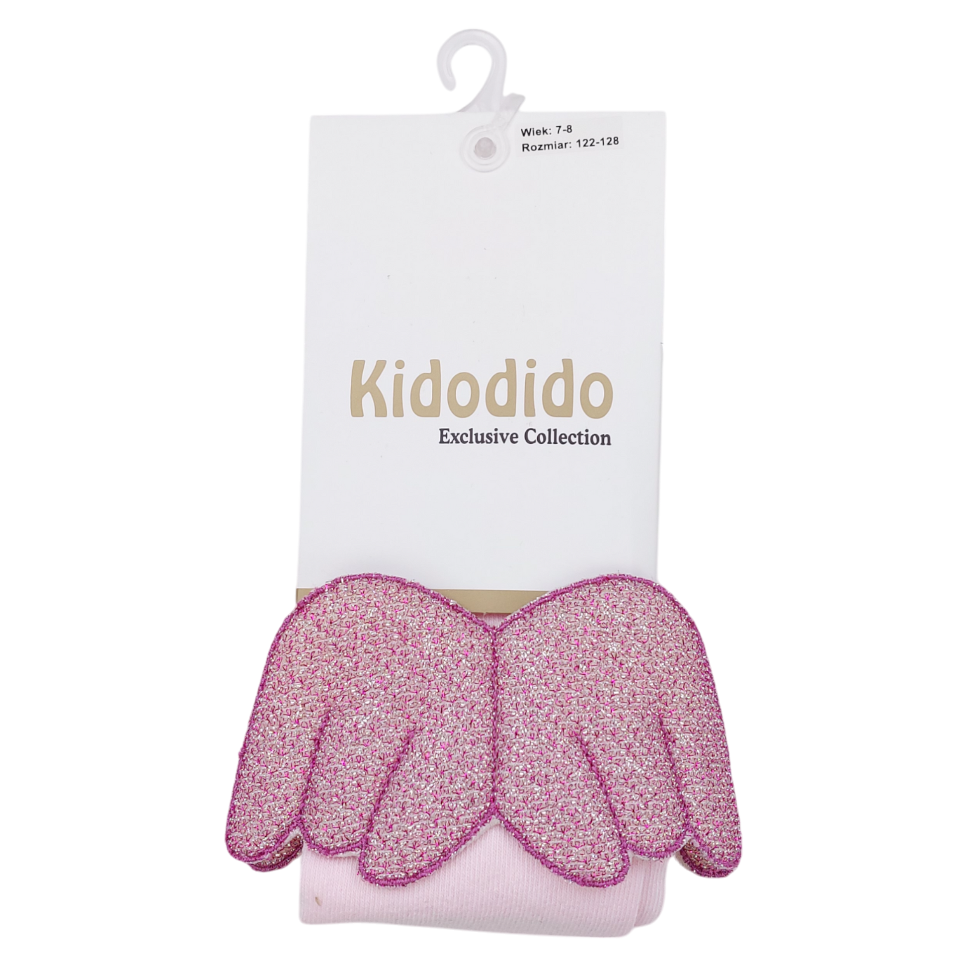 Rajstopy Kidodido RJ-545-41124 w kolorze różowym to doskonały wybór dla małych dziewczynek na sezon jesień-zima. Ozdobione uroczymi błyszczącymi skrzydełkami anioła w kolorze różowym z tyłu, łączą w sobie elegancję i wygodę. Wykonane z miękkiego i elastycznego materiału, są idealne na co dzień oraz na wyjątkowe okazje.