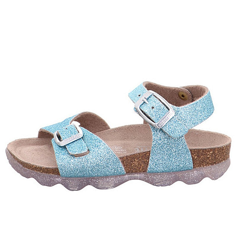Buty dla dzieci sandałki dla dziewczynek lakierowane na korku Superfit z kolekcji wiosna lato kod produktu 1-000127-7000 kolor niebieski