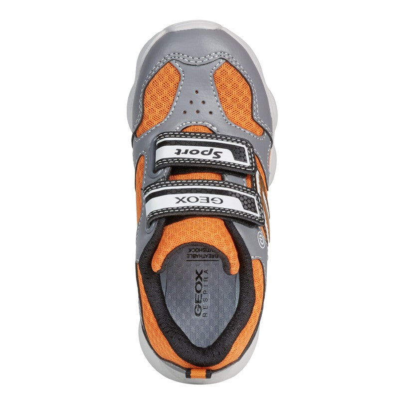 Buty dla dzieci sneakersy świecące zapinane na rzepy dla chłopców Geox z kolekcji wiosna lato kod produktu J024BC-014BU-C0036 kolor szary/pomarańcz