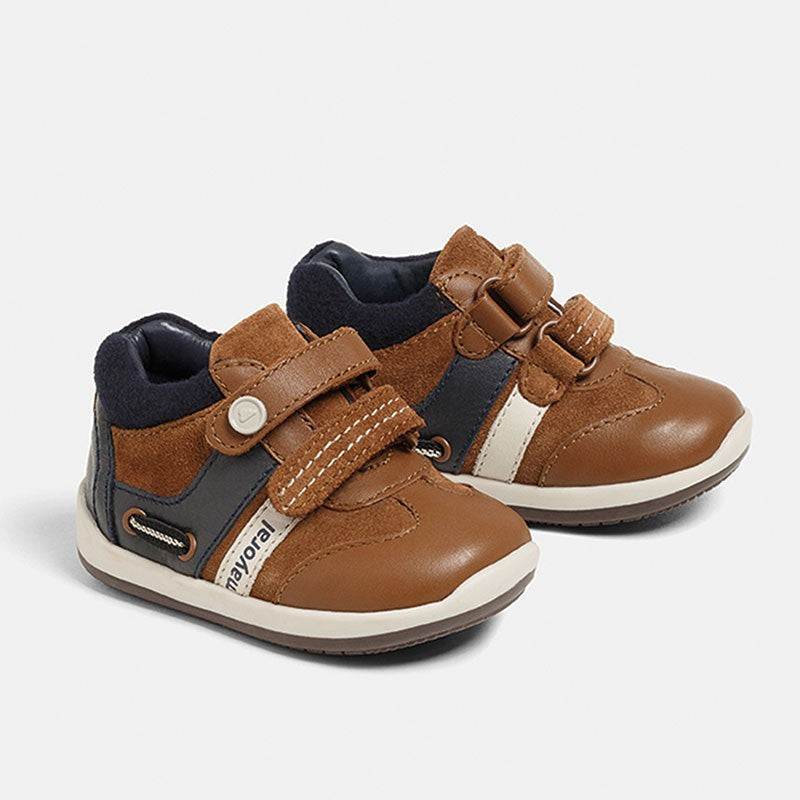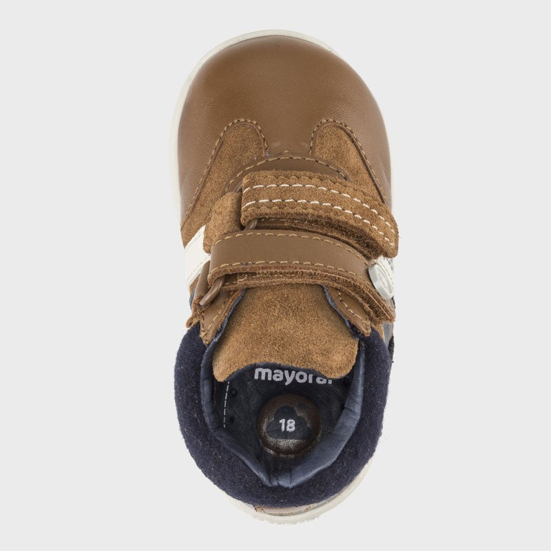 Buty sneakersy dla dzieci skórzane zapinane na rzep dla chłopców Mayoral z kolekcji baby boy z sezonu jesień-zima kod produktu 42156 kolor 11 Brąz. Buciki dziecięce.