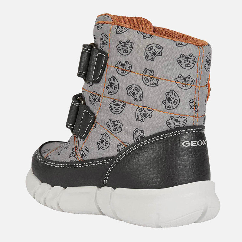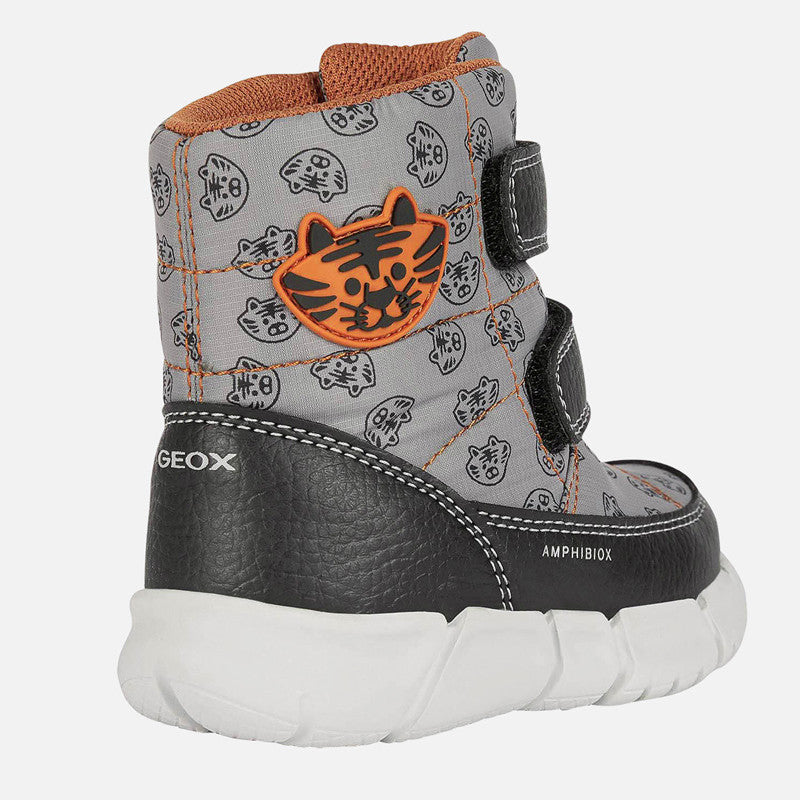 Śniegowce chłopięce Geox Amphibiox B043PC-0MNBU-C0036 to idealna propozycja na chłodne i mokre dni dla Twojego dziecka. Te wyjątkowe buty zimowe łączą doskonałą jakość wykonania ze stylowym designem, zapewniając najmłodszym zarówno ciepło, jak i wygodę podczas nawet najbardziej wymagających zimowych zabaw. Szary kolor z wyrazistymi pomarańczowymi akcentami oraz uroczymi motywami zwierzęcymi z tygryskiem sprawia, że śniegowce te są uwielbiane zarówno przez chłopców, jak i ich rodziców.