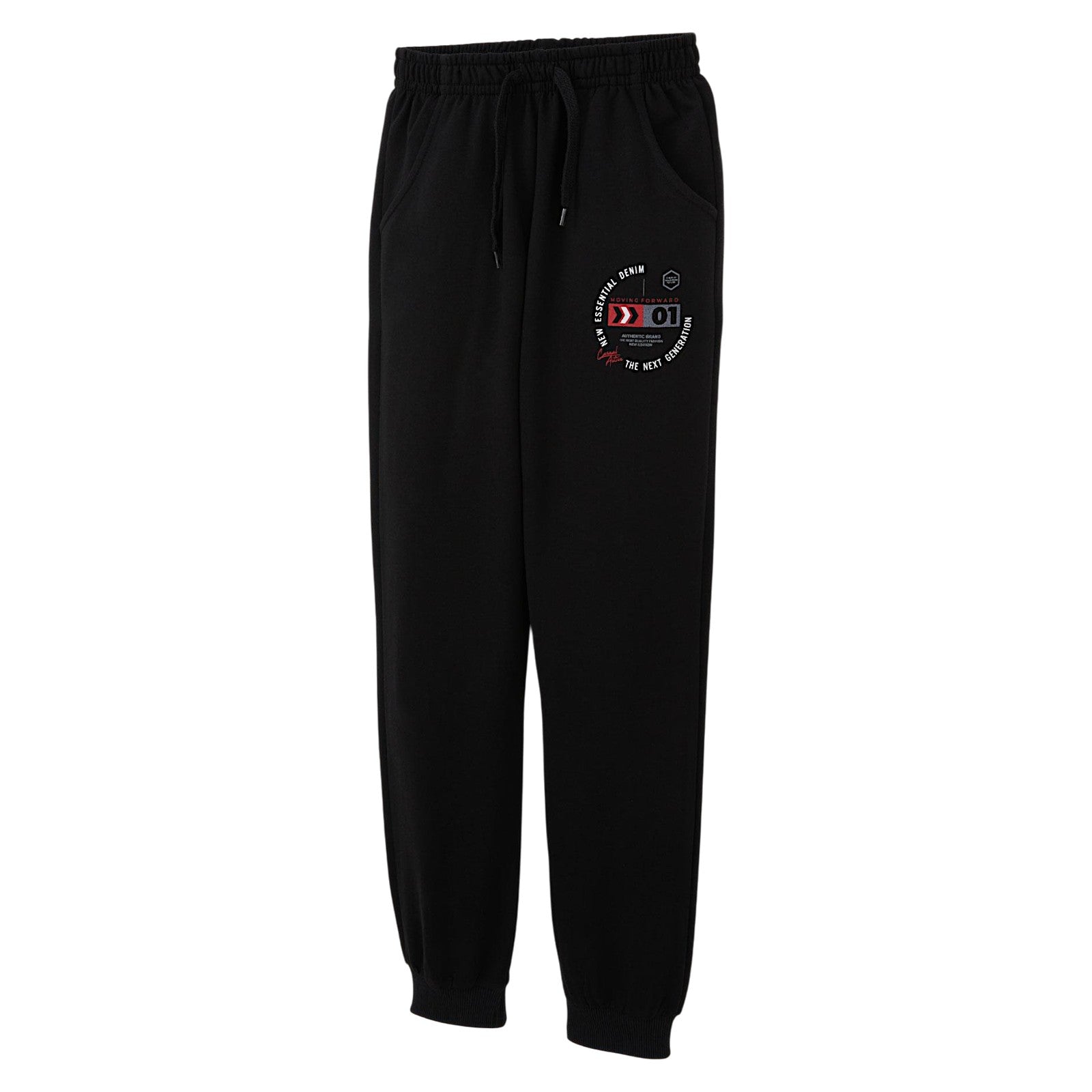 Wygodne spodnie dresowe chłopięce w kolorze czarnym, wykonane w 100% z bawełny, co zapewnia komfort i przewiewność. Model posiada elastyczny pas ze sznurkiem, ściągacze przy nogawkach oraz praktyczne kieszenie. Na nogawce znajduje się stylowy nadruk, który dodaje sportowego charakteru. Idealne do codziennego użytku, do szkoły i na aktywny dzień.