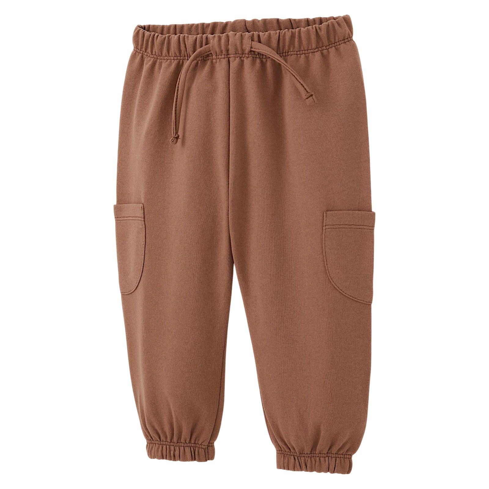 Model posiada elastyczny pas z regulacją na sznurek , dzięki czemu można go dopasować do sylwetki, zapewniając wygodne noszenie. Ściągacze przy nogawkach sprawiają, że spodnie dobrze trzymają się na miejscu, co jest szczególnie praktyczne podczas zabawy i aktywności fizycznej. Duże kieszenie cargo po bokach nie tylko nadają im sportowego charakteru, ale również zwiększają funkcjonalność, pozwalając na przechowywanie drobnych przedmiotów.