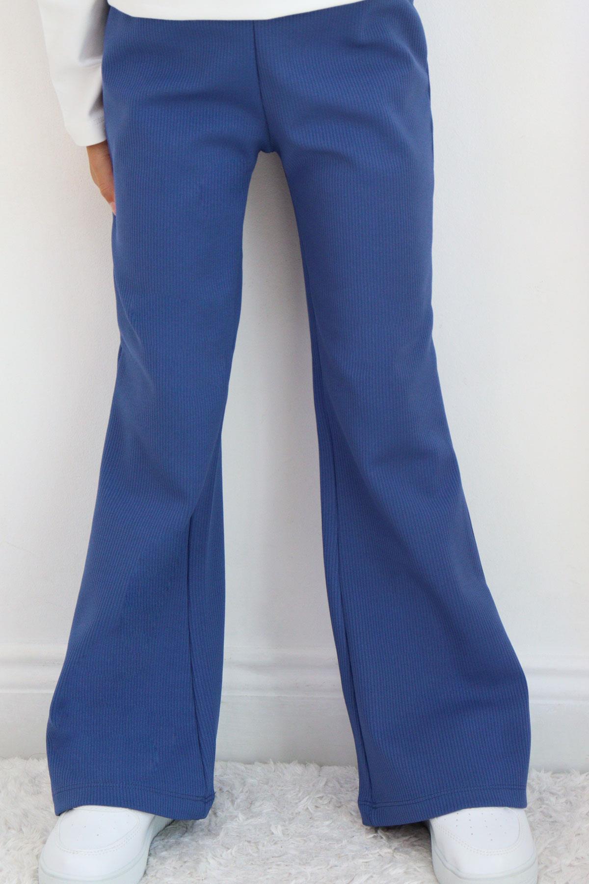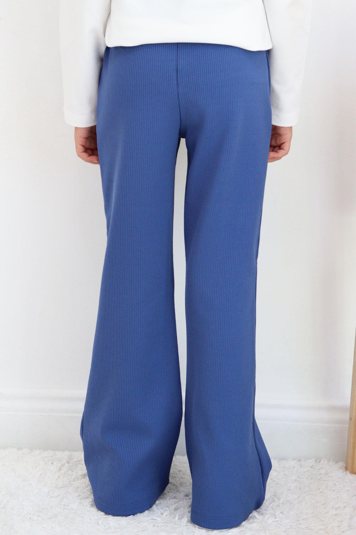 Spodnie dzwony prążek dziewczęce niebieski Breeze 21564-20825