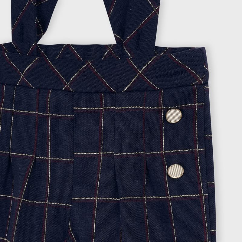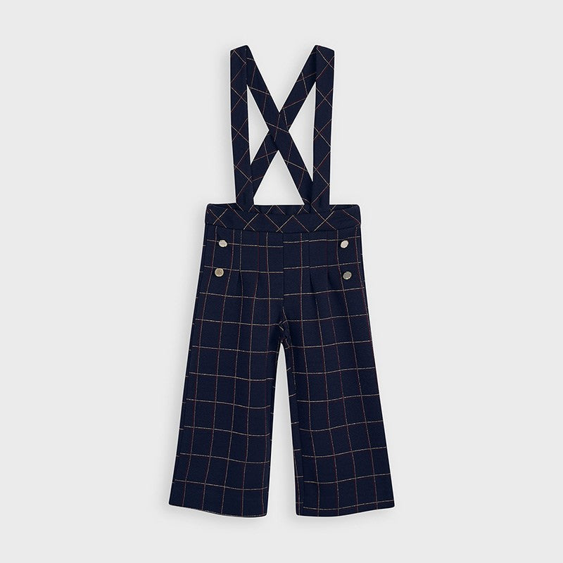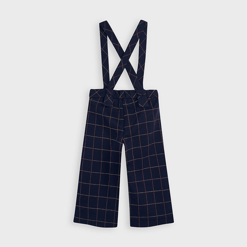 Spodnie dla dzieci kuloty na szelkach w kratę dziewczynka Mayoral z kolekcji Mini girl z sezonu jesień-zima kod produktu 4551 kolor 15 Granat. Odzież dziecięca.