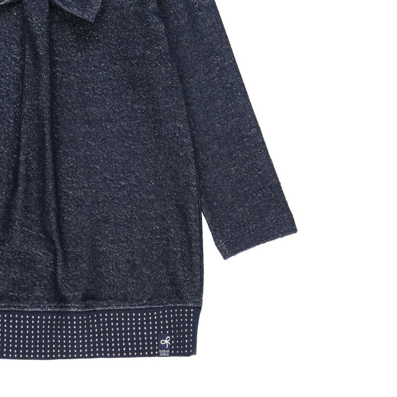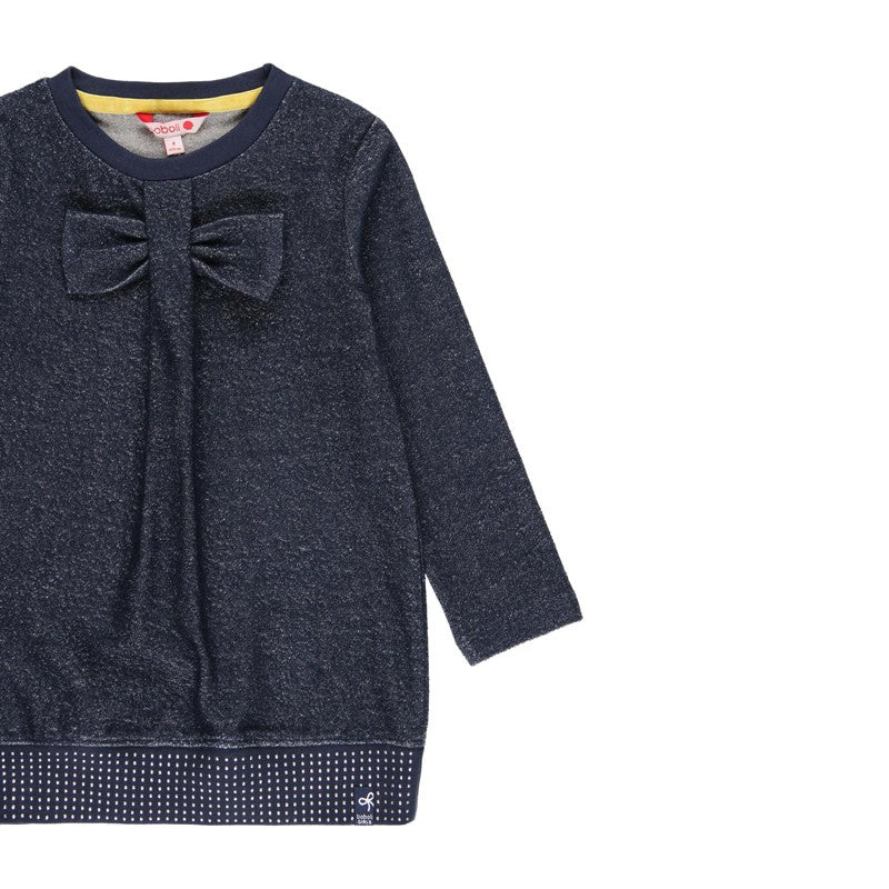 Sukienka bawełniana dla dziewczynki dla dzieci z długim rękawem i ozdobną kokardą dziewczynka Boboli z kolekcji jesień zima kod produktu 401072 kolor granat. Odzież dziecięca.