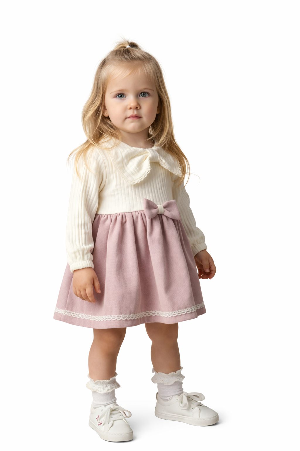 Sukienka kokardka dziewczęca beż Bebedexs 1760-31126-1