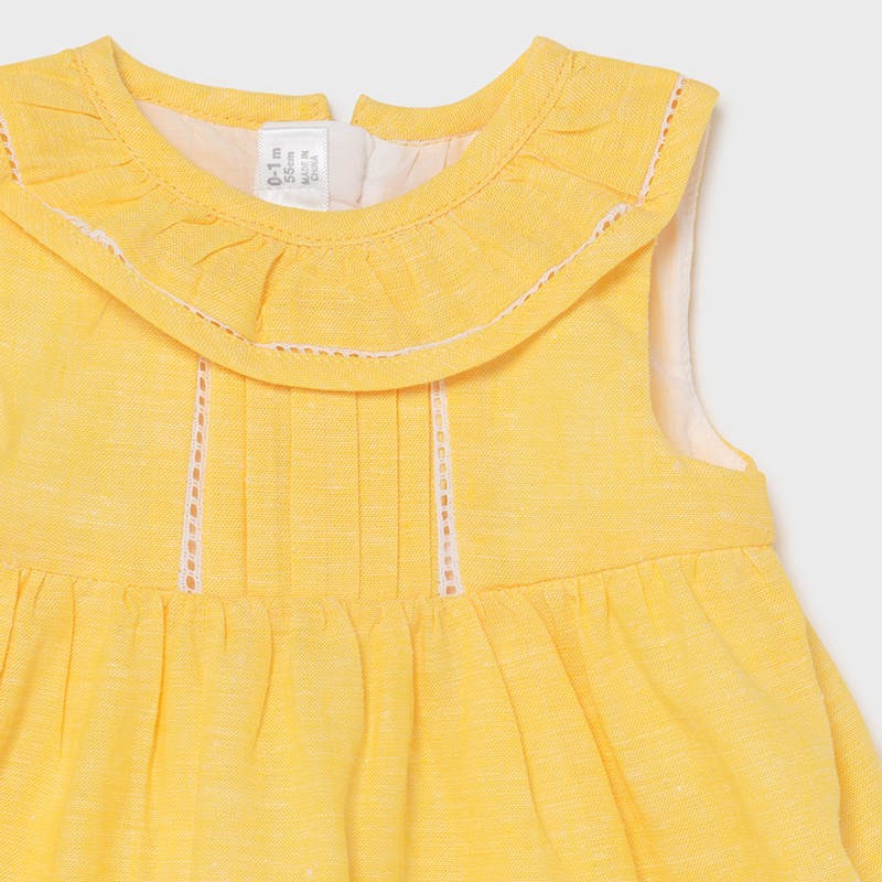 Sukienka lniana dla dzieci z majteczkami dziewczynka Mayoral z kolekcji newborn girl z sezonu wiosna-lato kod produktu 1834 kolor 39 Żółty. Odzież dla noworodków.