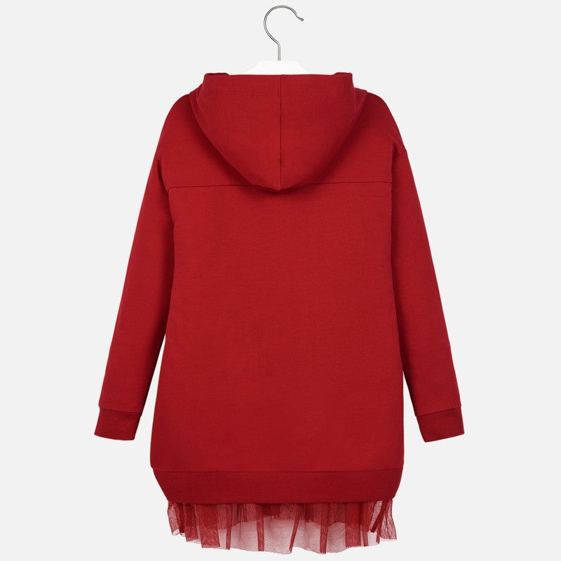 Ubrania dziecięce Mayoral. Sukienka sportowa z kapturem i tiulem z kolekcji junior girl z sezonu jesień zima. Kod produktu producenta 7942 kolor 62 Czerwony.