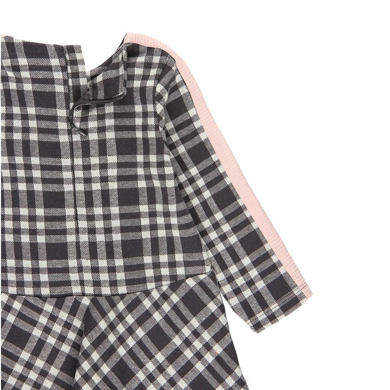 Sukienka z dzianiny w kratę dla dziewczynki Baby dla dzieci z długim rękawem dziewczynka Boboli z kolekcji jesień zima kod produktu 241029 kolor czarny. Odzież dziecięca.