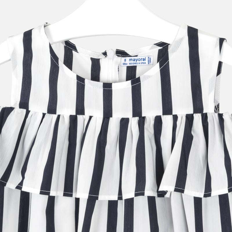 Sukienka w paski dla dzieci na szerokich ramiączkach z falbanką dla dziewczyny Mayoral z kolekcji junior girl z sezonu wiosna lato kod produktu 6964 kolor 42 Granatowy. Odzież dla młodzieży dziecięca.
