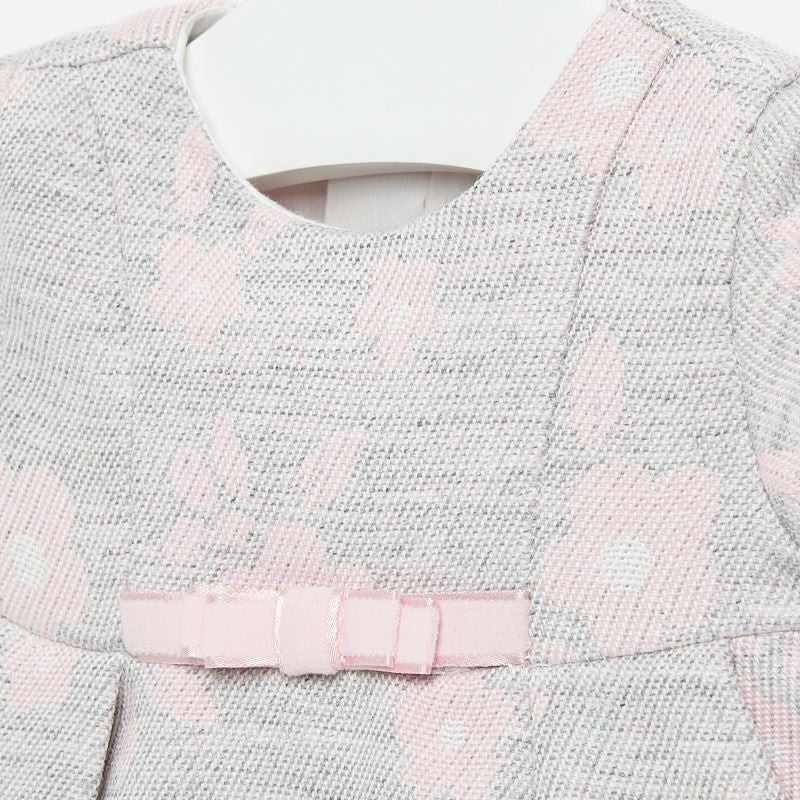 Sukienka żakardowa w kwiaty dla dzieci z krótkim rękawem dziewczęca Mayoral z kolekcji newborn girl z sezonu jesień zima kod produktu 2818 kolor 96 Srebrny. Odzież dla noworodków.