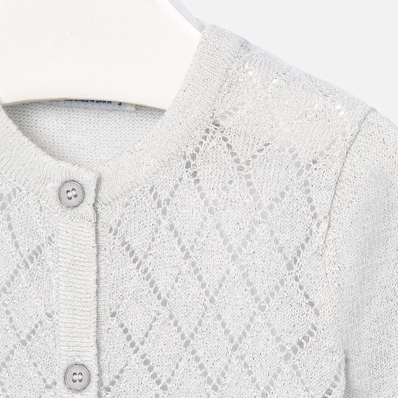 Sweterek ażurkowy dla dziewczynek Mayoral 1328-27 Srebny