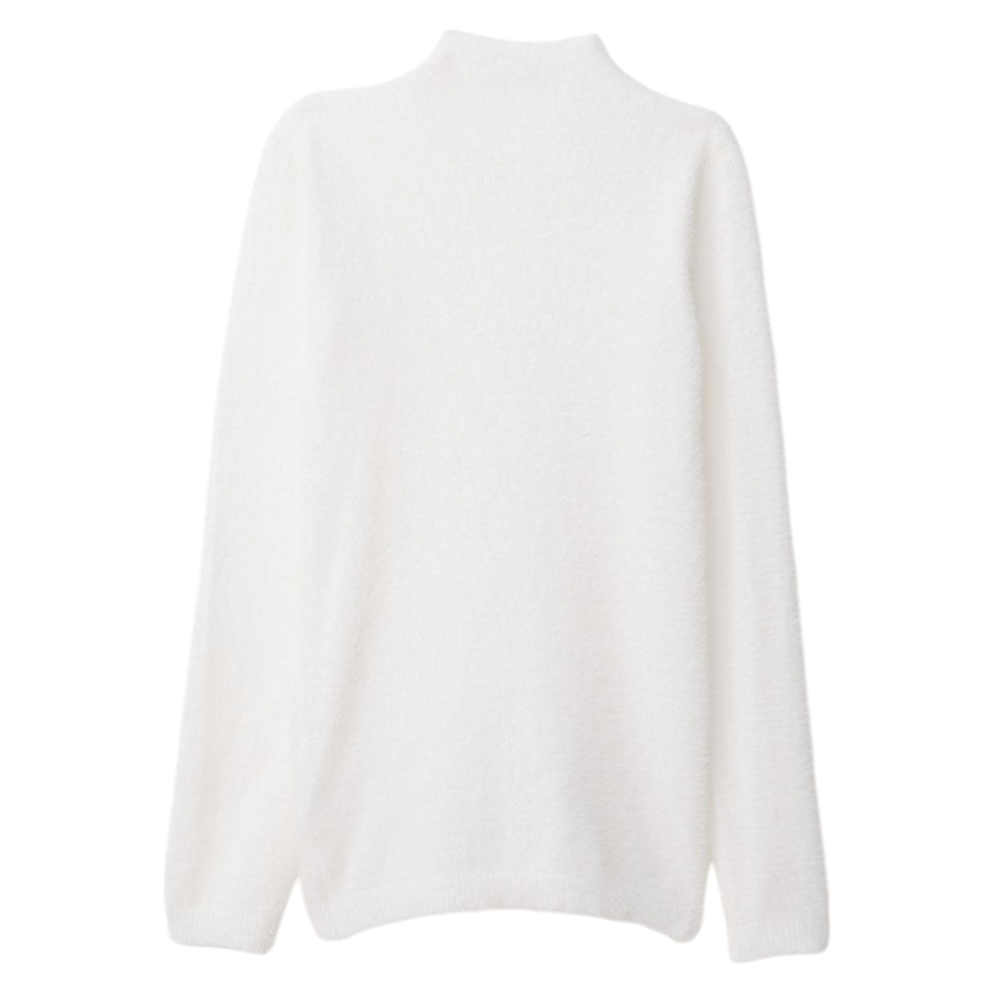 Elegancki, sweterek dziewczęcy z kolekcji jesień-zima w kremowym kolorze. Wykonany z miękkiego i przyjemnego w dotyku materiału z meszkiem, zapewnia ciepło i wygodę w chłodniejsze dni. Długie rękawy, brak kieszeni i zapięć, klasyczny krój sprawiają, że sweterek jest funkcjonalny i prosty w codziennym użytkowaniu. Idealny do wielu stylizacji, zarówno na co dzień, jak i na specjalne okazje.