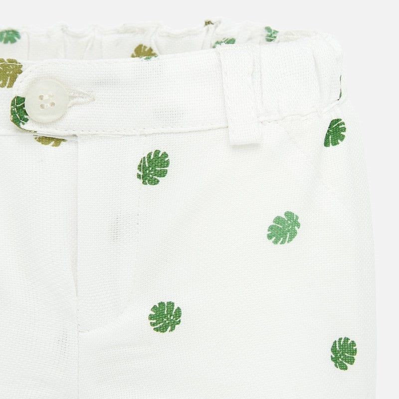 Szorty dla dzieci bawełniane krótkie w ozdobny nadruk liści chłopiec Mayoral z kolekcji newborn boy z sezonu wiosna lato kod produktu 1262 kolor 52 biały/zielony. Ubranka dla noworodka.
