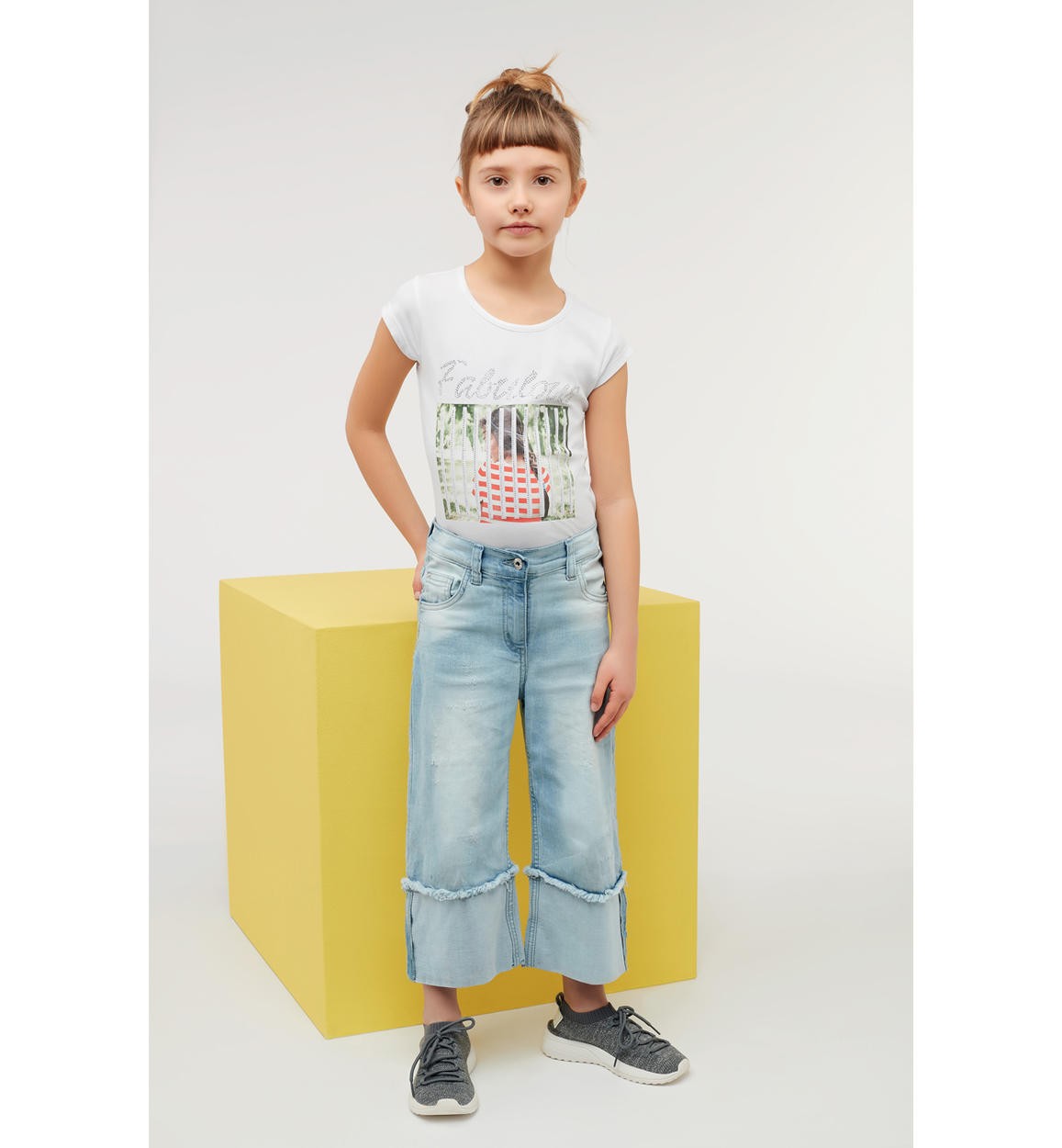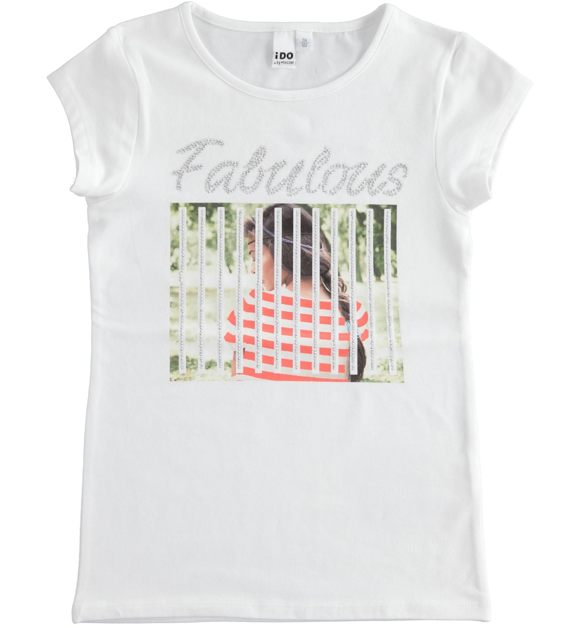T-SHIRT dla dzieci koszulka sportowa z krótkim rękawem dla dziewczynek iDO z kolekcji wiosna lato kod produktu J498 kolor 0113 biały. Ubranka dla dzieci.