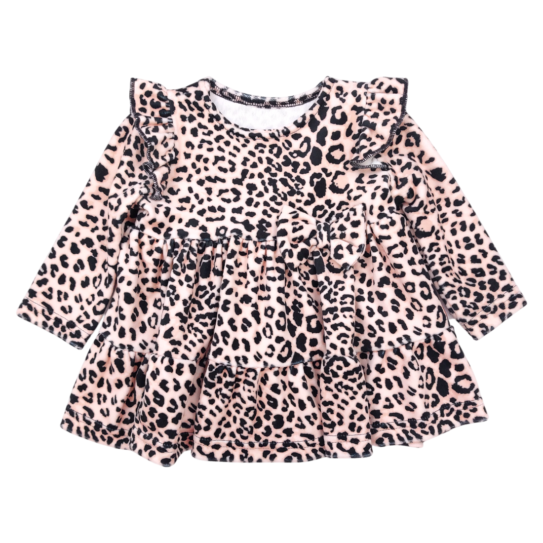 Sukienka panterka z weluru dziewczęca beż Mona 134-151124-1